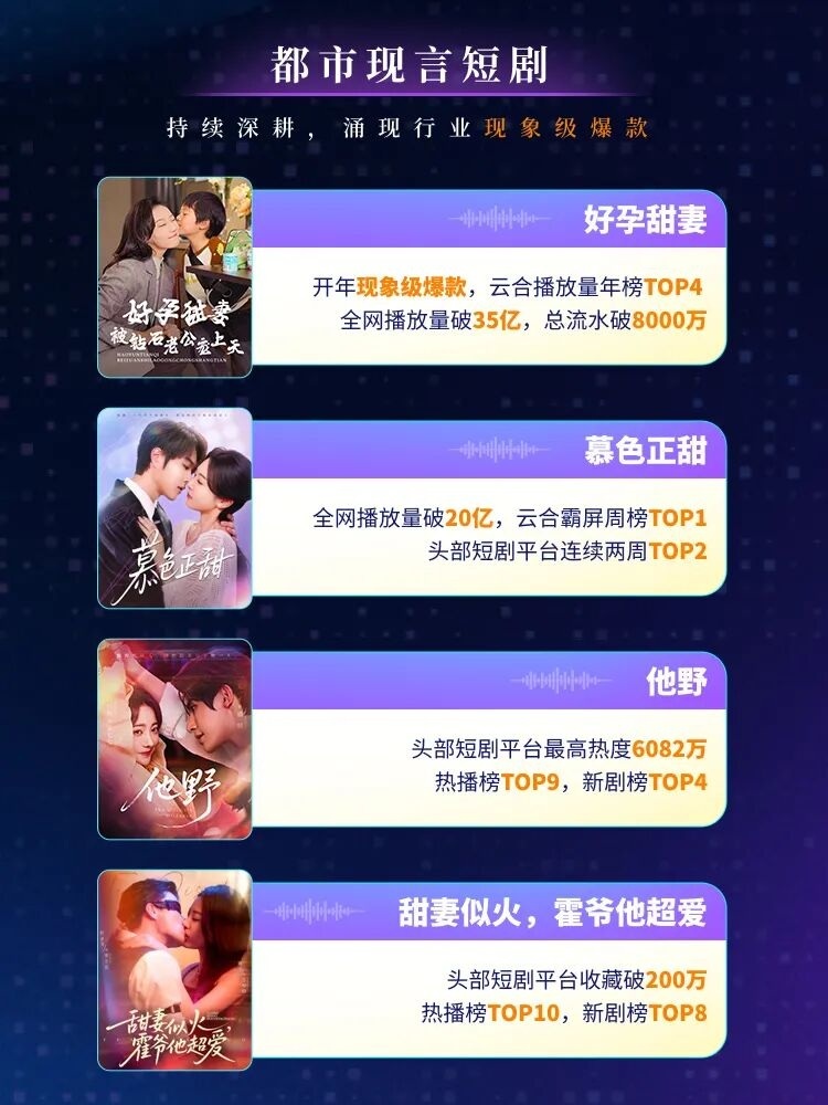 阅文短剧发布的2025年度成绩单显示,原创都市轻喜短剧《好孕甜妻》,成为年度现象级爆款。该剧全网播放量已超过35亿,总流水突破8000万,位居付费月榜TOP1。《慕色正甜》延续轻松搞笑的都市言情风格,获得云合数据微剧有效播放霸屏榜周榜TOP1,全网播放量突破20亿。