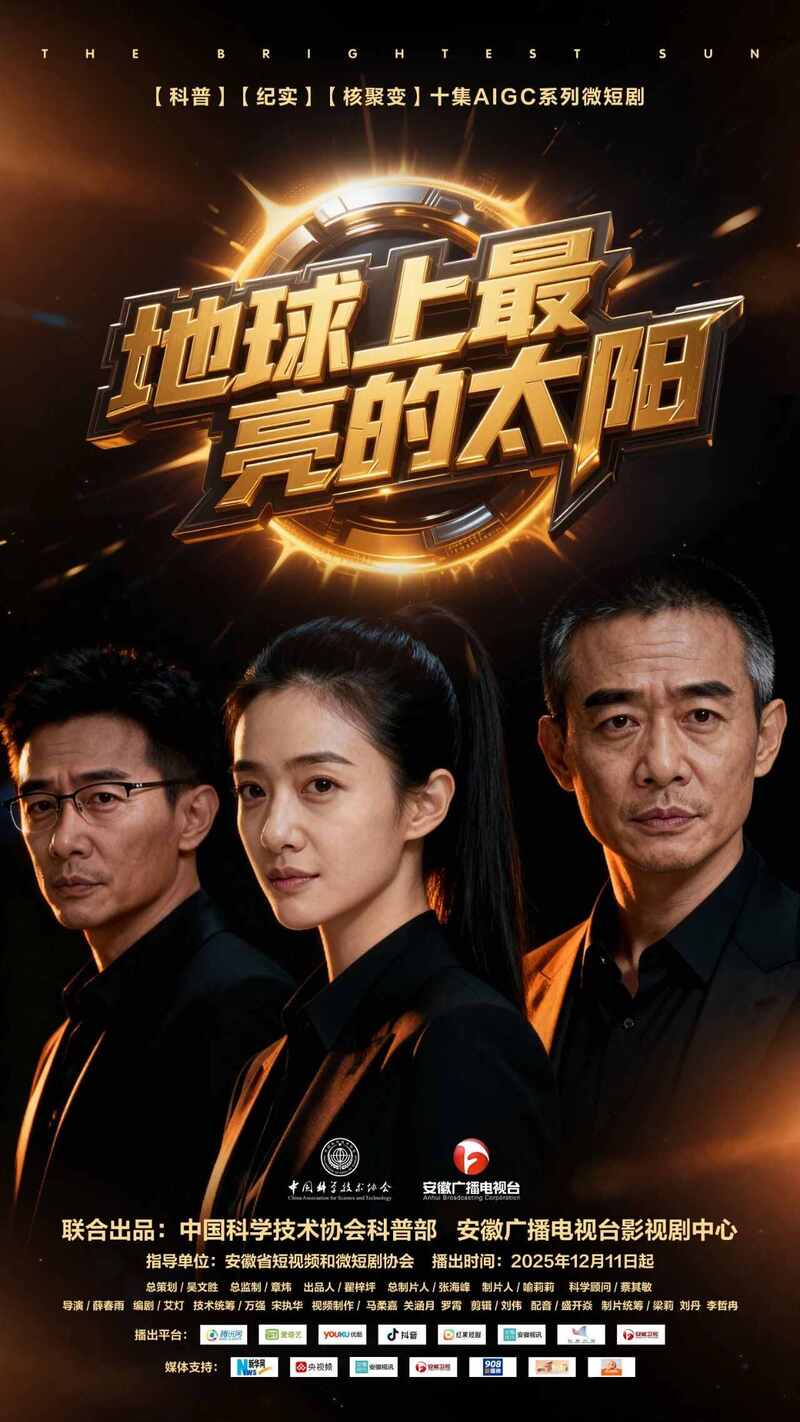12月11日,由中国科协科普部,安徽广播电视台影视剧中心联合出品,安徽省短视频和微短剧协会指导的,AIGC科普微短剧《地球上最亮的太阳》,科普中国平台,安徽视讯APP上线。