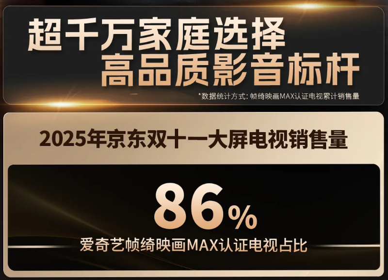 例如,爱奇艺推出“帧绮映画MAX认证电视”,并于2025年“双十一”期间联合京东开设专属认证电视专区。此前,双方已经在多个电商节点展开合作推广。