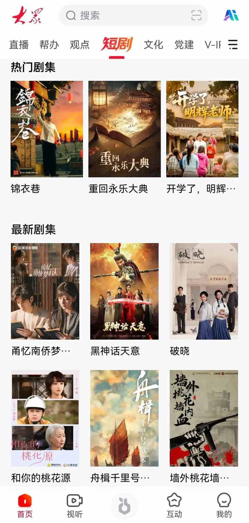 12月18日,大众新闻客户端短剧频道正式上线!精选了首批15部题材多元、品质上乘的微短剧,涵盖都市喜剧、传统文化、悬疑推理、女性成长、古风言情等热门类型,两大入口不迷路:打开大众新闻客户端,首页顶端频道栏进入。打开大众新闻客户端,底部“视听”版块进入。