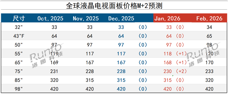 2025年12月液晶电视面板市场特点及2026年1月预测
