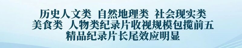 近年来,广电总局高度重视精品创制传播工作,持续推动精品创作工程,发布“纪录片创新行动计划”,对从“小众”走向“大众”,从垂类到类型化传播的纪录片品类发挥出重要的推动作用。从传播数据角度观察,今年以来,纪录片呈现出四个突出的传播亮点: