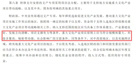 需要注意有一句重点内容:同等条件下,对中西部地区,以及实施跨区域、跨央地的重大项目予以优先考虑。所以,中西部的文化企业大有可为!如果科技无法和东部比,那么是不是可以从辐射带动强、社会影响广入手?