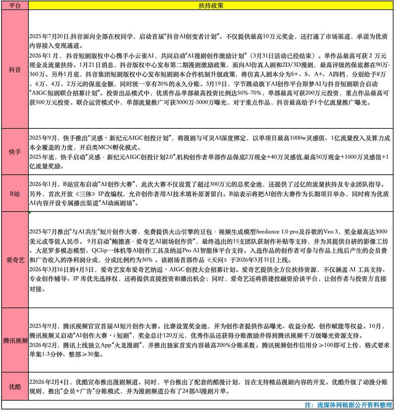 近日,抖音、快手、B站、爱奇艺、腾讯视频、优酷等平台密集出手,从资金激励、工具赋能、渠道开放到IP授权,全方位加码创作者扶持政策,意图在这场范式转移的关键窗口期,锁定AI内容生态主导权,抢占行业发展先机。
