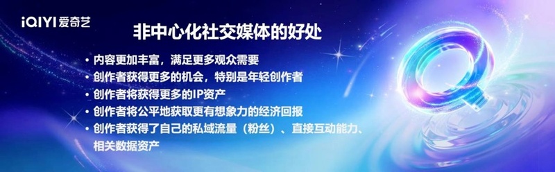 正是在这种焦虑蔓延的背景下,龚宇分享了一份关于行业趋势的洞察:长视频平台将走向“去中心化”。他指出,传统媒体模式是由少数人决定内容供给,而未来长视频平台或将转型为“创作者和用户社区”,平台自身只参与少量头部内容的制作,并分享了去中心化后的五大好处。