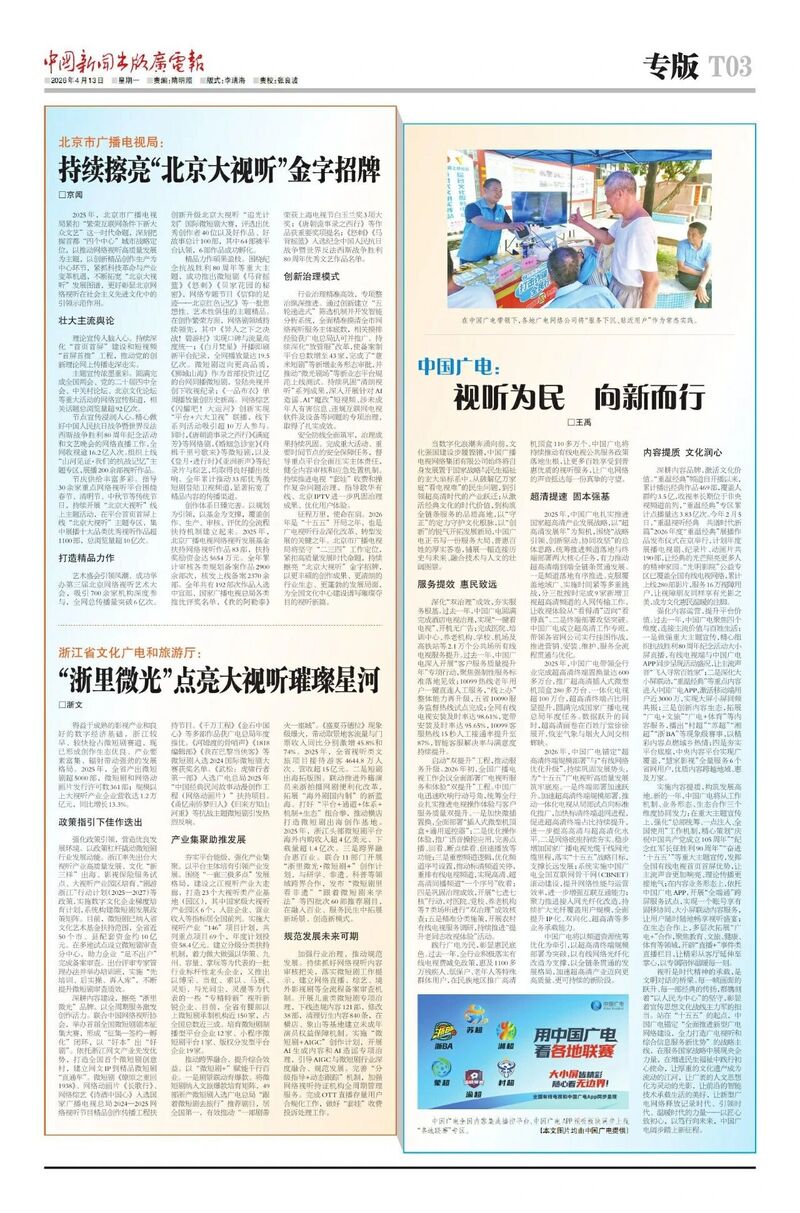 安全防线全面筑牢,治理成果持续巩固。完成重大活动、重要时间节点的安全保障任务,督导重点平台全面压实主体责任,健全内容审核和应急处置机制。持续推进电视“套娃”收费和操作复杂问题治理,指导歌华有线、北京IPTV进一步巩固治理成果、优化用户体验。