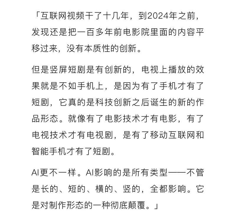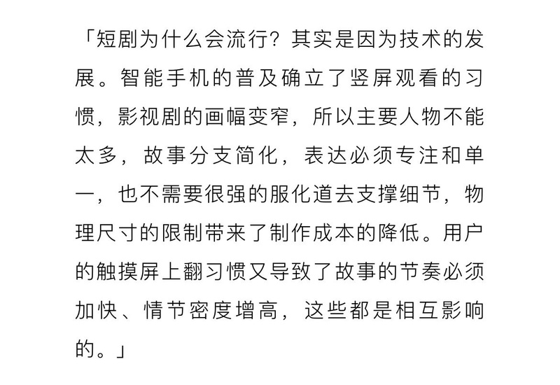 今年,他开始认同短剧了。还从媒介技术发展的视角,解释了短剧火热的必然性。