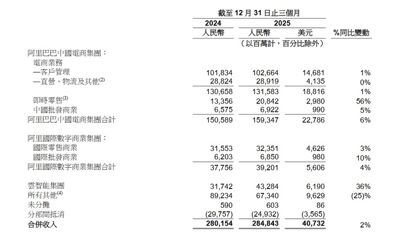 财报显示,阿里云单季收入达到 432.84 亿元,同比增长 36%,AI 相关产品收入实现连续第十个季度三位数增长;同时,面向消费者的千问全端 MAU 已突破 3 亿。
