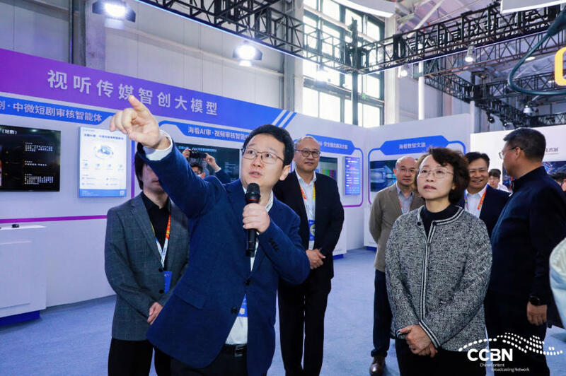 2026年4月22日-25日,第32届中国国际广播电视信息网络展览会(CCBN2026)在北京举行。4月23日上午,中央宣传部副部长,国家广播电视总局局长、党组书记曹淑敏一行莅临海看股份展区参观指导,听取海看股份总经理赵儒祥关于“视听传媒智创大模型”的汇报,对海看股份深化人工智能创新融合应用成果表示肯定。