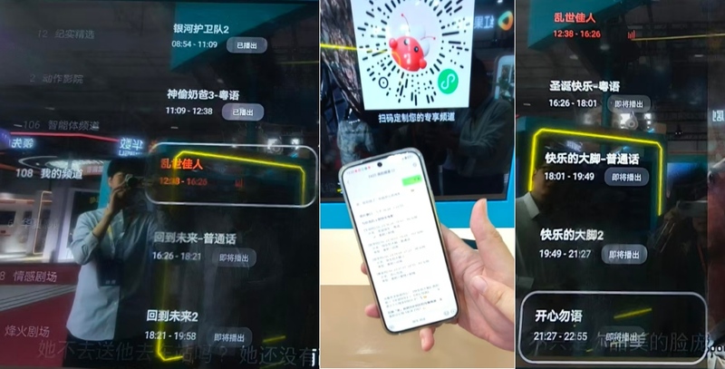 “蜂享视界”采用线性频道制,可选择固定分类频道,也支持用户定制专属频道。用户通过手机扫码进入小程序,可语音/文字输入需求(如心情、天气、喜好等),AI推荐对应电影类片单;支持用户确认、替换片单,确认后1-5分钟更新展示。AI可记录用户偏好、场景、人群画像,持续优化推荐。