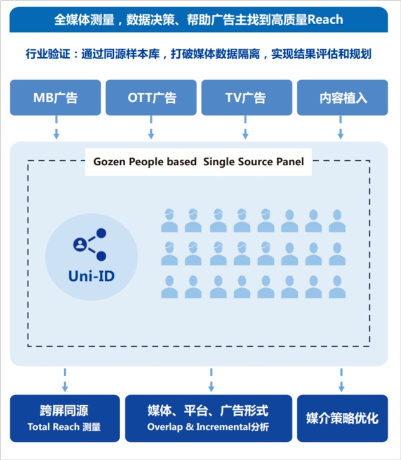 数据赋能。Uni-ID体系打破了媒体数据隔离,实现跨屏同源测量。通过投前圈人、投中精筛虚假流量、投后量化全媒体触达,广告主能够找到更高质量的Reach,提升投放效率。