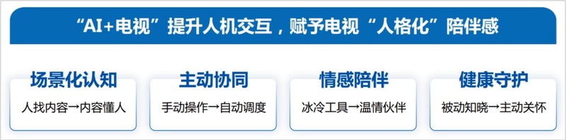交互升维。“AI+电视”赋能电视人格化的陪伴感。海信、长虹等品牌通过AI大模型,实现场景化感知与拟人化情感互动,让交互从被动知晓转为主动关怀。