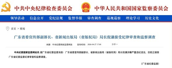 广东省宣传部副部长、省新闻出版局局长倪谦落马