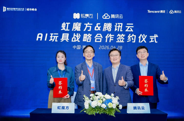 4月28日,在2026腾讯全球数字生态大会·重庆峰会上,四川虹魔方网络科技有限公司与腾讯云正式签署AI玩具战略合作协议。双方将围绕云计算、AI玩偶、智能硬件三大核心领域开展深度协同合作,联合打造一体化解决方案,共同推动AI玩具行业的智能化建设与产品创新升级。