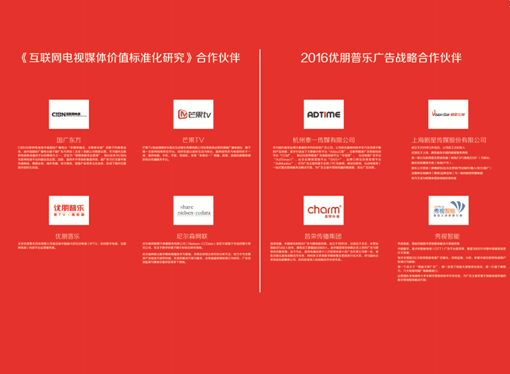 融资5.28亿+双牌照授权+全新子公司优朋普乐传媒发展公司,这是优朋普乐9月21日第一季发布会的成果。不到一个月的时间,优朋普乐又有了新动作,10月19日,“不一样的优朋普乐”第二季发布会在北京励骏酒店举行。在大会上,优朋普乐现场正式签约互联网电视重磅广告大单,总价值达到1. 2亿元。同时,“2015年互联网电视发展白皮书”也在现场举行了隆重的首发仪式,大会举办了“互联网电视媒体价值标准化研究”战略合作启动签约。优朋普乐董事长兼CEO邵以丁以“奔跑吧!电视”开场,邵以丁认为,“奔跑吧!电视”符合在2015年的秋天整个行业进入到一种状态,它代表了一种动态的趋势。迄今,优朋普乐与广电运营商、电信运营商、互联网电视牌照方等合作方共同协同发展的互动电视注册用户家庭已超过2000万(户),按户均3.5人推及,全网触达个人用户超过7100万人,服务覆盖的用户家庭遍及全国31个省区。到8月份发布数据,优朋普乐月度总活跃规模1800万用户,每日DAU为462万户,其中,使用播放服务的月度活跃用户数已经达到880万户,用户月均点播次数68次,均使用时长26.2小时。