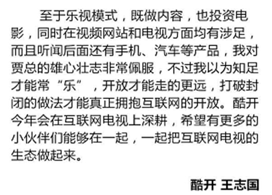 大圣、我家的才是真正的超级电视、请看、有图有真相!还有还有,刚才乐乐说无生态不超级,难道他不知道无商不“贾”吗?我在这儿还想和乐乐说句话,“你如果做手机或者自行车、汽车等等,我都祝福你,同时也送你一个横幅,可以装裱一下挂在家里哈(坏笑)