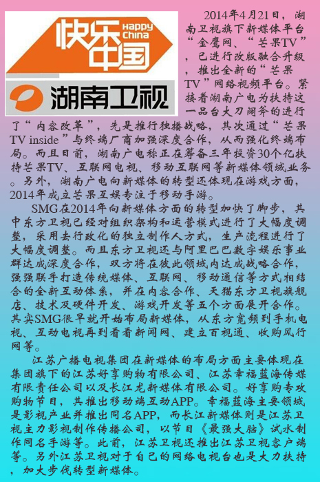 2014年8月,TCL与湖南广电共同推出了55英寸、40英寸的芒果TV+电视。其接入的是芒果TV内容播控平台。