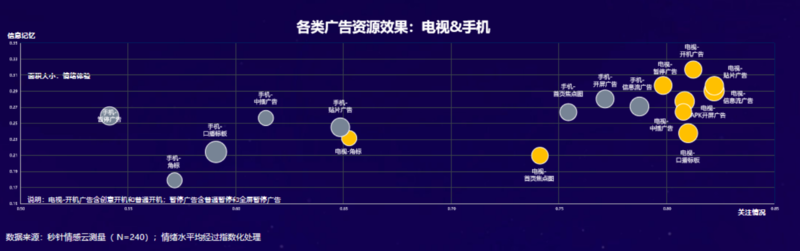 高可见是基础,被消费者看到是第一步,想要实现高可见,大面积、有声音、强视效是关键。据秒针情感云测量数据,这方面,相比手机端,电