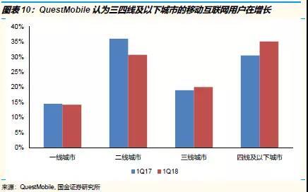 在投资界和媒体界,流传着一种说法:“小镇青年”(三线及以下城市的年轻消费者)将成为互联网乃至整个泛娱乐行业的救星,他们能为移动互联网带来下一波流量和消费增长。果真如此吗?在这个问题上,主流市场研究机构没有达成共识。QuestMobile赞成“小镇青年”的故事,认为从2017年3月到2018年3月,中国三线、四线及以下城市的移动互联网用户比例在增长,而且这个过程还没有结束。