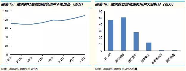 无论如何,我们看到各类互联网内容服务的付费用户都在增长。以腾讯为例,2017年第四季度,已经拥有1.35亿社交增值付费用户,这个数字很可能超过了它的游戏付费用户。2017年底,阅文集团的付费用户为1260万,付费渗透率上升了1个百分点;我们估计腾讯音乐在同期的付费用户超过2800万。在过去几年,投资者已经目睹了游戏用户的巨大付费能力,而其他互联网内容有可能蕴藏着相同的付费潜力。