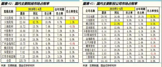 很多投资人只看院线市占率的变化,我们认为这个数据的参考意义没有那么大,因为很多院线采用加盟的形式,虽然算在票房里,收入贡献却微乎其微(加盟费只有票房的2%左右)。我们更看重影投公司市占率的变化(只统计资产联结型影院)。今年1-4月,票房市占率显著提升的只有2家公司,万达电影和横店影视,主要原因也是这两家公司在银幕扩张上采取了比较激进的战略(2017年万达银幕增速28.3%,横店自有银幕增速19.3%,全国银幕增速为23.3%),从而保证了市占率提升。