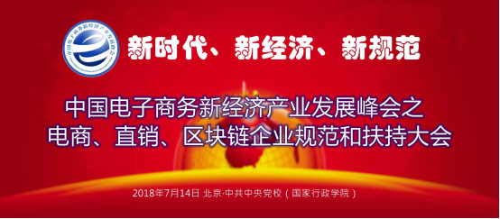 为响应各部委、各级主管部门、行业组织关于严查严打涉及电子商务新经济领域违法经营活动的通知精神和规范整治工作部署,由多部委相关职能司局、机构作为支持单位,由工信部主管中国电子商务协会·中国电子商务应用推广中心、中国投资协会城镇化投资专业委员会、中国市场学会直销专家委员会共同主办,中国电子商务新经济产业发展峰会系列活动之“中国电商、直销、区块链企业规范和扶持大会”将于2018年7月14日在北京中共中央党校(国家行政学院)皇苑大酒店隆重召开。