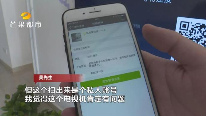步步高新天地小米旗舰店负责人李明鸿查询了电视机的序列号,吴先生购买的电视机确为是小米生产,至于为何会出现个人二维码,他表示并不知情。