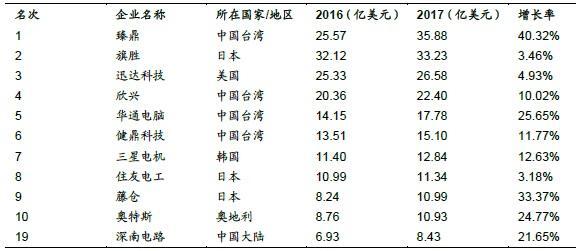 表1:全球PCB商场营收排名