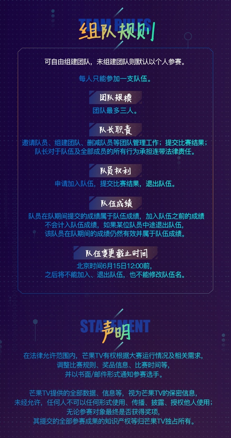 大赛面向全社会遴选出最有创意、最杰出的算法达人,参赛者以个人或者不超过三人的战队形式,可自由组建队伍。据悉,赛题将聚焦图像和推荐、画质优化三大领域,设置包括视频特定点位追踪、视频推荐、画质损伤修复三大赛题,优秀参赛者不仅有丰厚奖金以资鼓励,优秀算法还将被应用于芒果TV核心领域,在校学生还将可能加入芒果TV“青芒计划”,发放“special offer”!颁奖典礼暨专家分享论坛上,更能与一系列业内顶尖大咖、专家们同台交流分享。