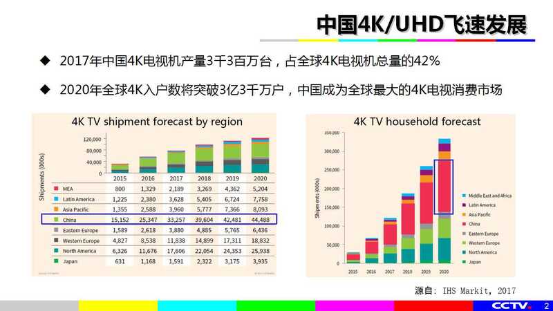【流媒体网】消息:2017年中国4K电视机产量3千3百万台,占全球4K电视机总量的42%。