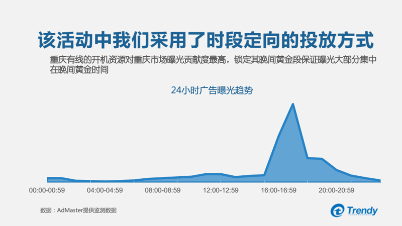 【流媒体网】摘要:重庆有线的开机资源对重庆市场曝光贡献度最高,锁定其晚间黄金段保证曝光大部分集中在晚间黄金时间。