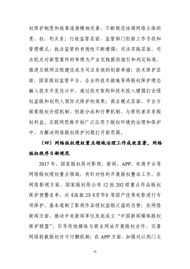 2017年中国网络版权保护年度报告