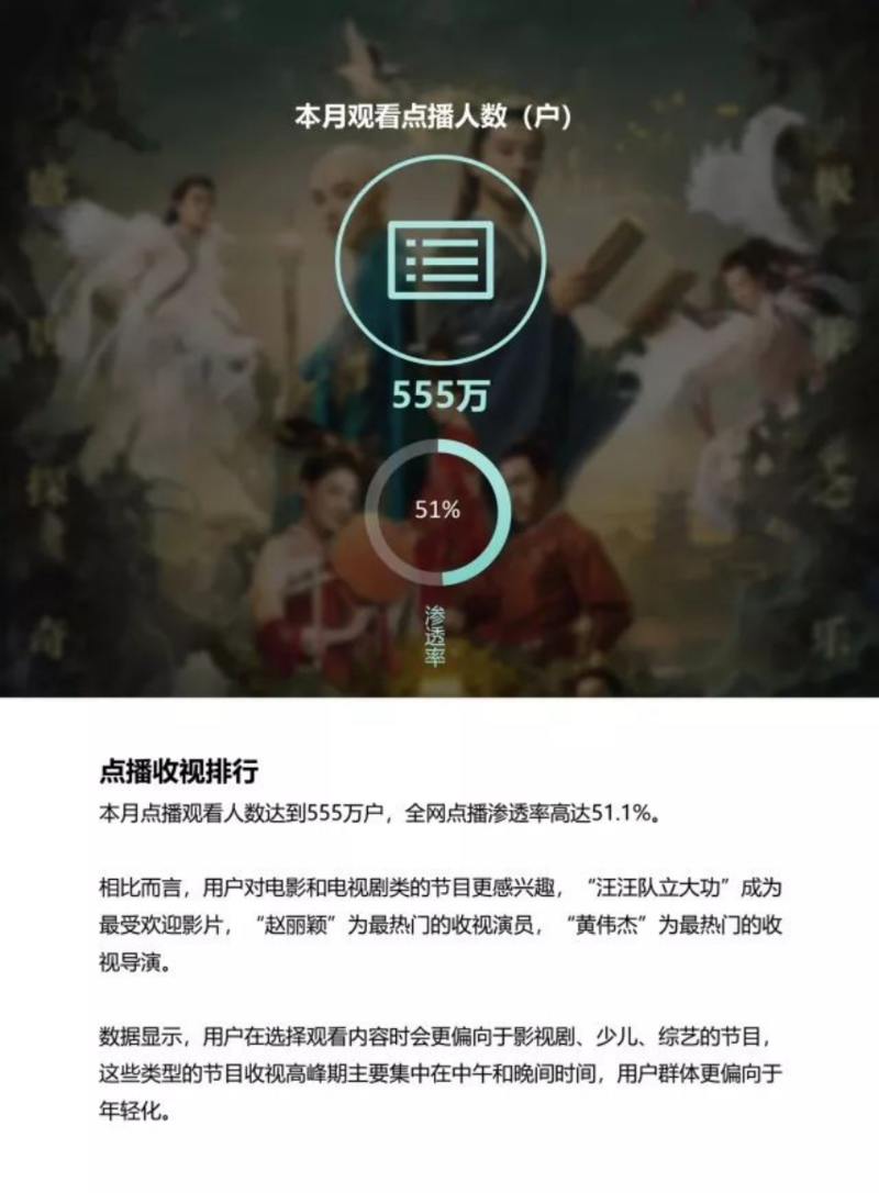 【流媒体网】消息:截止2018年,广东IPTV用户发展已达到1086万用户,较上月环比增长4.8%,较去年同比增幅86.5%。