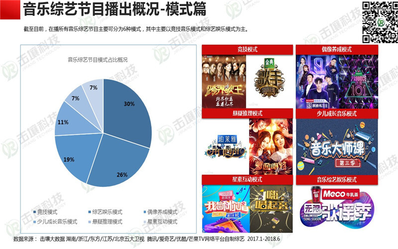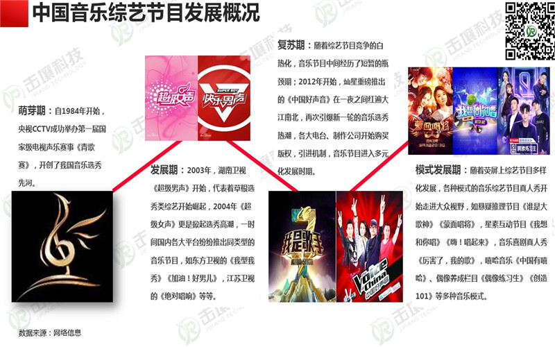 【流媒体网】摘要:音乐综艺节目作为最早的综艺类型之一,始终在荧屏上保持着旺盛的生命力。 随着综艺节目种类的多元化发展,音乐模式也逐渐打破选秀模式的禁锢,开始涌现出众多明星竞技和星素互动等多模式音乐节目,以下是PPT内容: