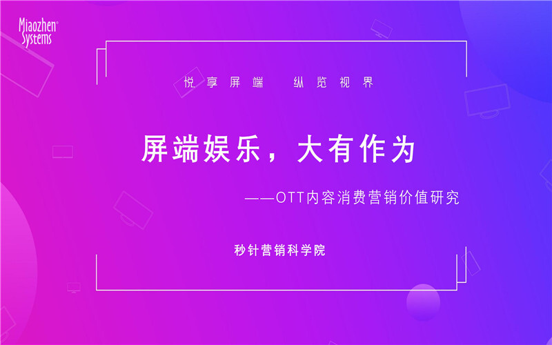 【流媒体网】消息:秒针营销科技院在会上的演讲主题是《屏端娱乐,大有作为》---《OTT内容消费营销价值研究》发布以下是PPT内容: