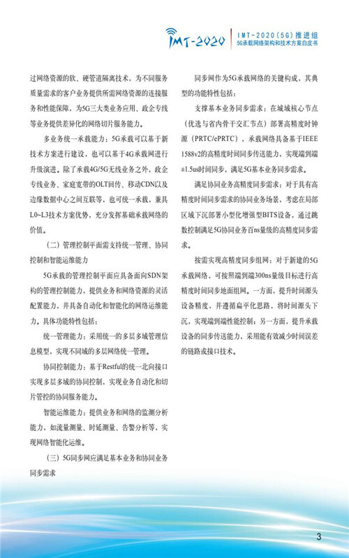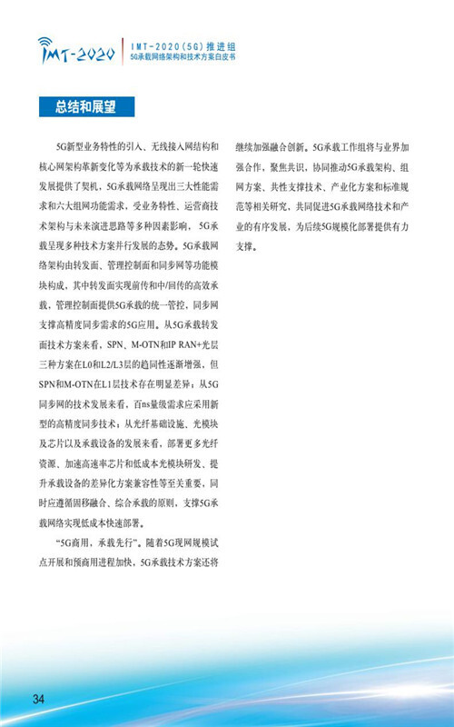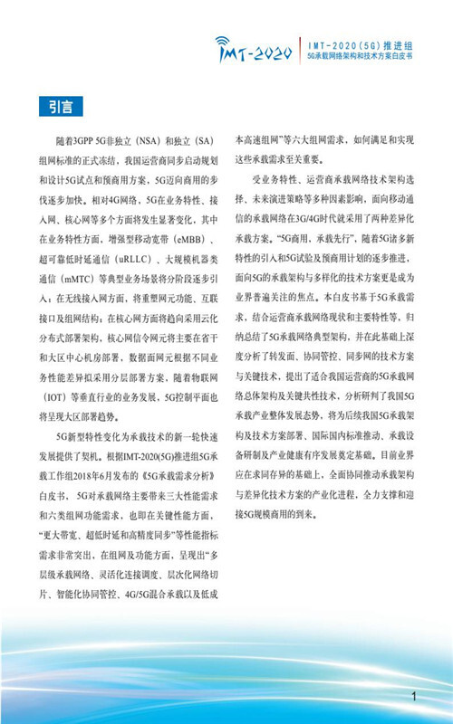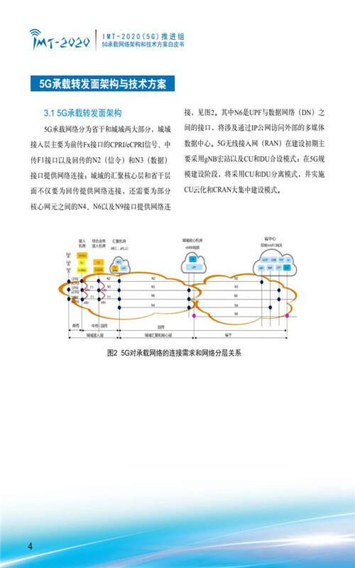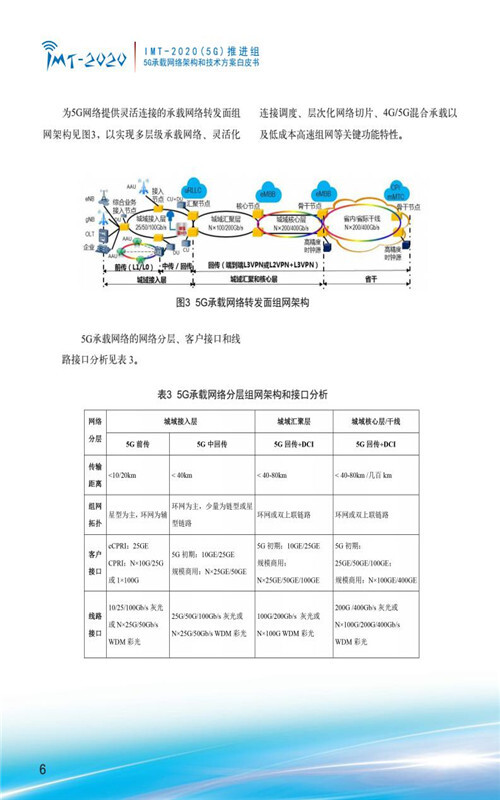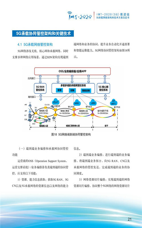 【流媒体网】摘要:9月28日,IMT-2020(5G)推进组在中国国际通信展的第三届5G创新发展高峰论坛上正式发布《5G承载网络架构和技术方案》白皮书,整体阐述了5G承载网络总体架构、5G承载转发面架构和技术方案、5G承载协同管控架构和关键技术、5G同步网架构和关键技术、我国5G承载产业发展趋势分析等内容,以加速推动承载网络架构完善,促进技术方案融合发展,加快产业化进程,全力支撑和迎接5G商用到来。