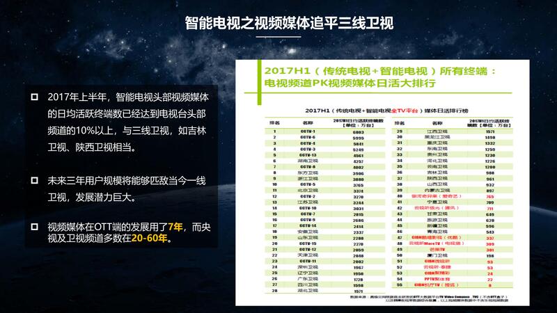 10月25-26日,以“运营未来,视在必行”为主题的流媒体网第16届电视新媒体高峰论坛在杭州西溪举行,在25日下午的“电视大屏的精耕细作”分论坛上,上海常春藤投资有限公司高级合伙人 高悦进行了主题为《走进智能媒体时代》的演讲。以下是演讲的PPT: