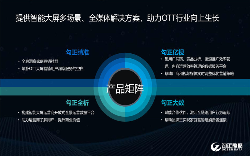 10月25-26日,以“运营未来,视在必行”为主题的流媒体网第16届电视新媒体高峰论坛在杭州西溪举行,在26日下午的“数据驱动大屏智能营销”分论坛上,勾正数据副总裁&广告和媒体事业部总经理姜岚进行了主题为《数据驱动大屏智能营销——智能大屏全链路解决方案》的演讲。以下是演讲PPT内容: