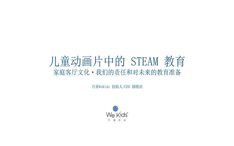 在26日下午“智慧运营的家庭新场景”的分论坛上,万童互动科技(北京)有限公司创始人兼CEO储晓冶做了主题为《儿童动画中的STEAM教育》的演讲。以下是演讲的PPT内容: