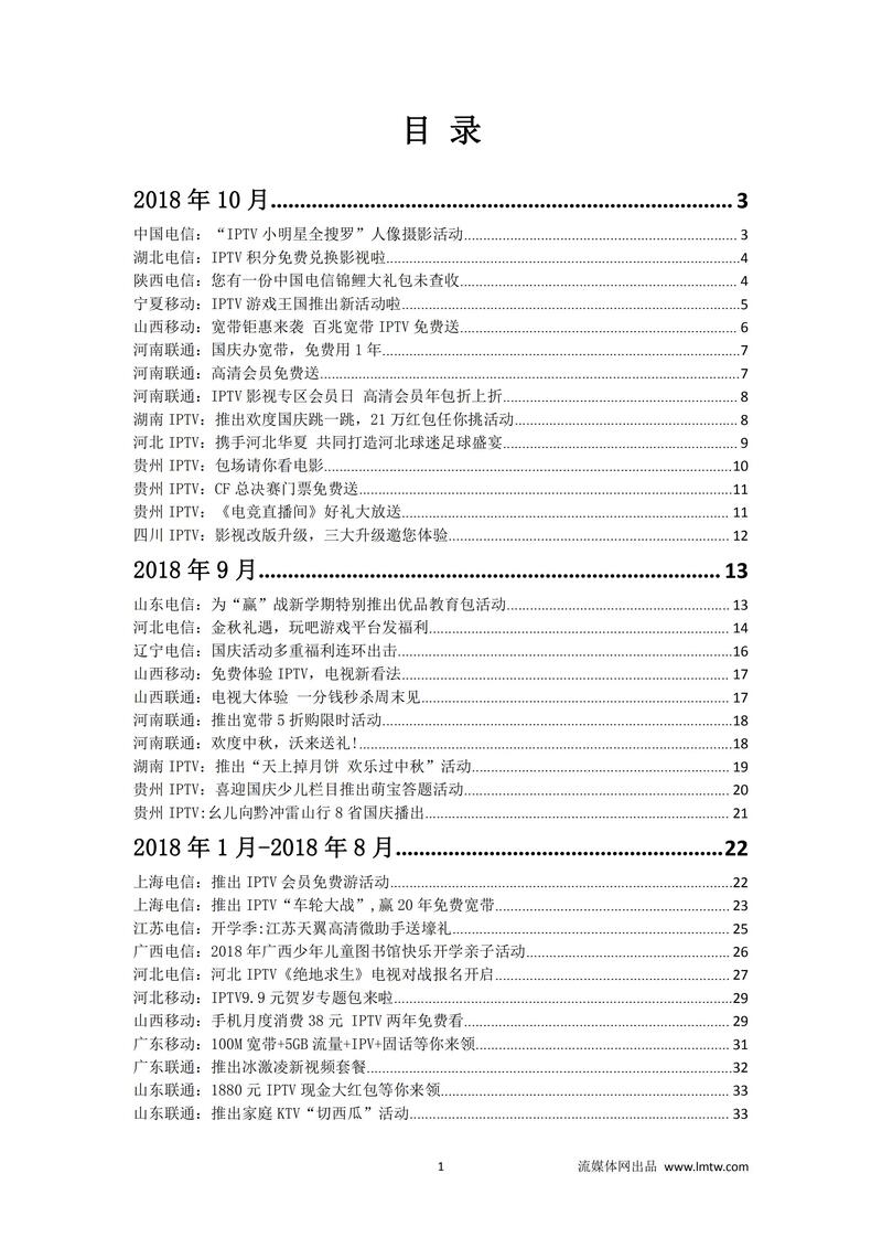 报告原文下载请点击:《2018年1—10月IPTV各省市场活动汇总报告》