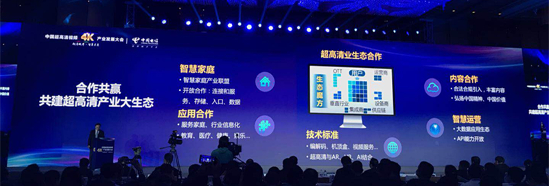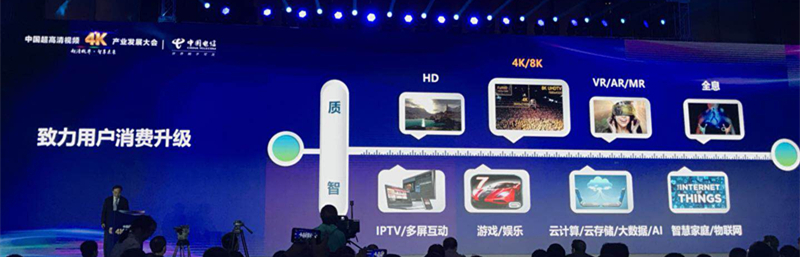 会上,中国电信集团有限公司总经理刘爱力作了主题为《深化智能化网络,推动4K超高清创新发展》的演讲。
