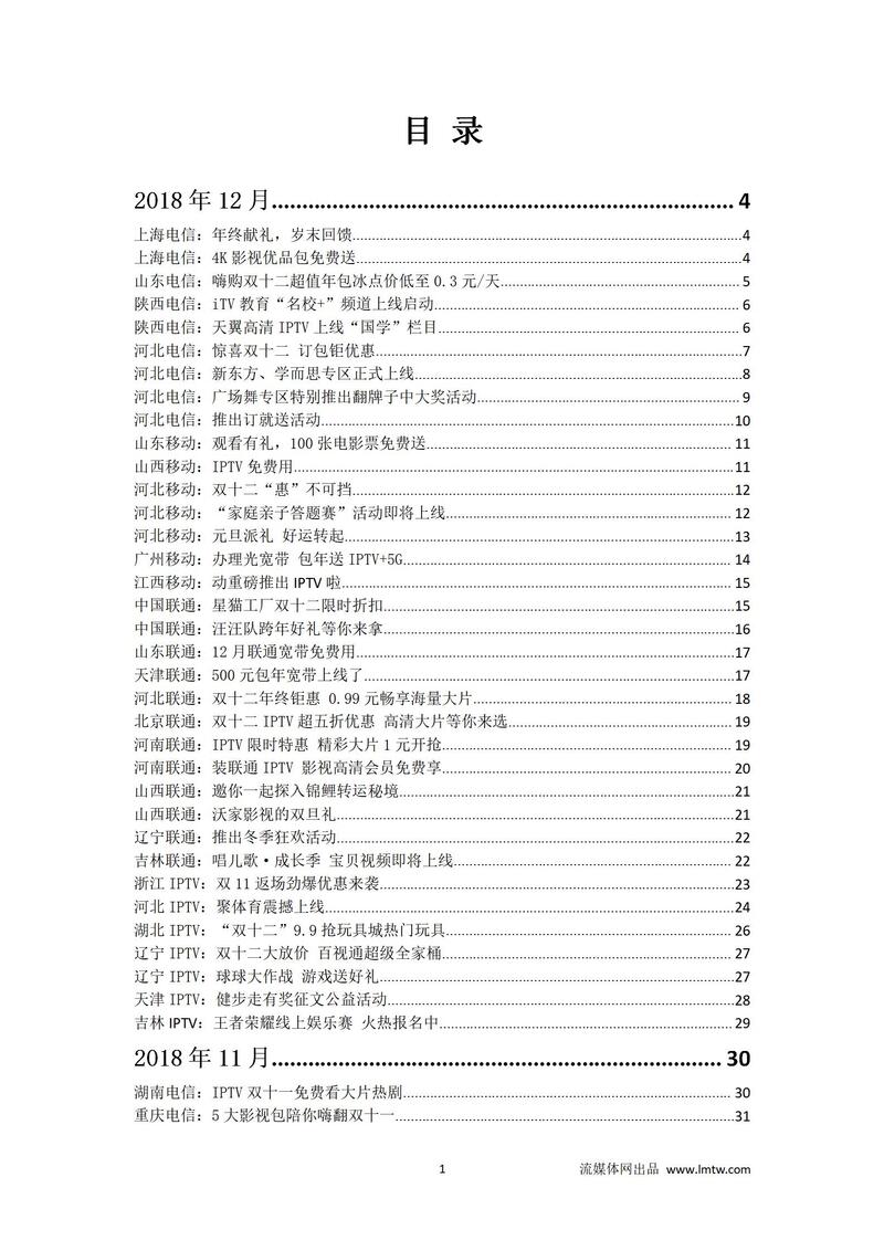 报告原文下载请点击:《2018年12月IPTV各省市场活动汇总报告》