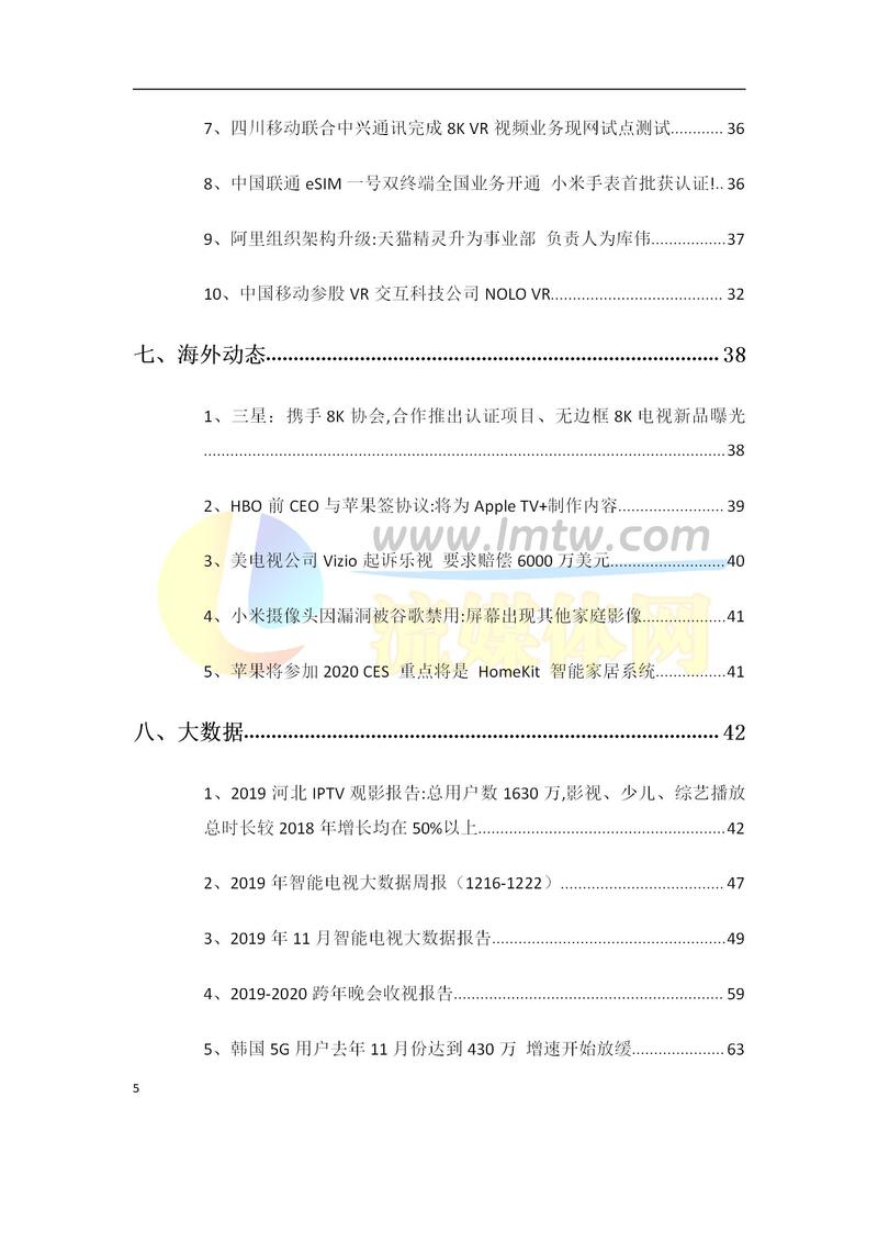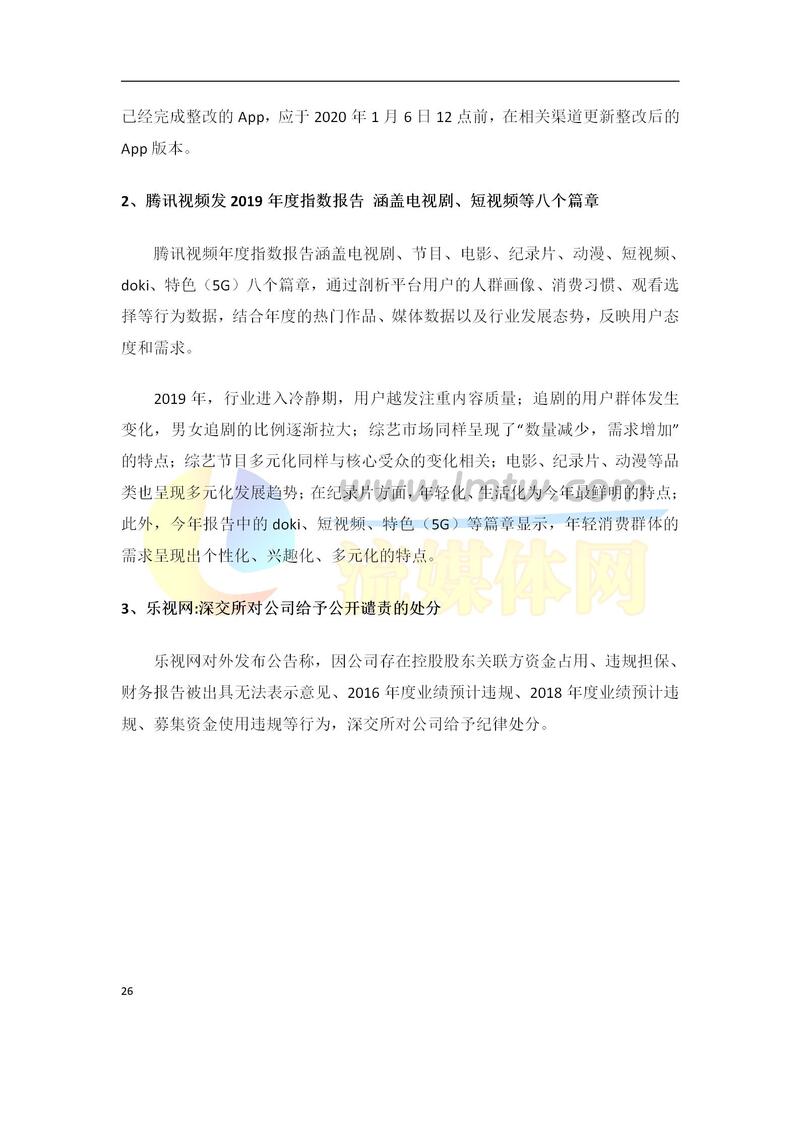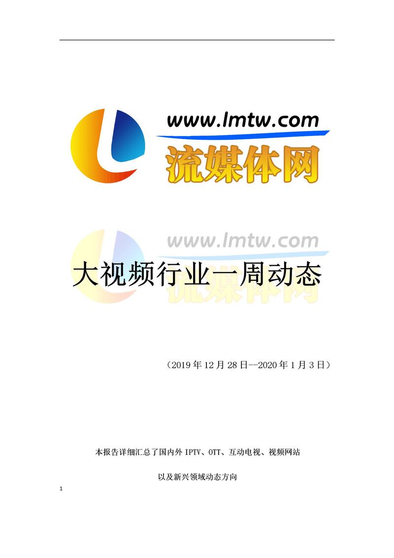 大视频行业一周市场动态报告(2019.12.28-2020.1.3)