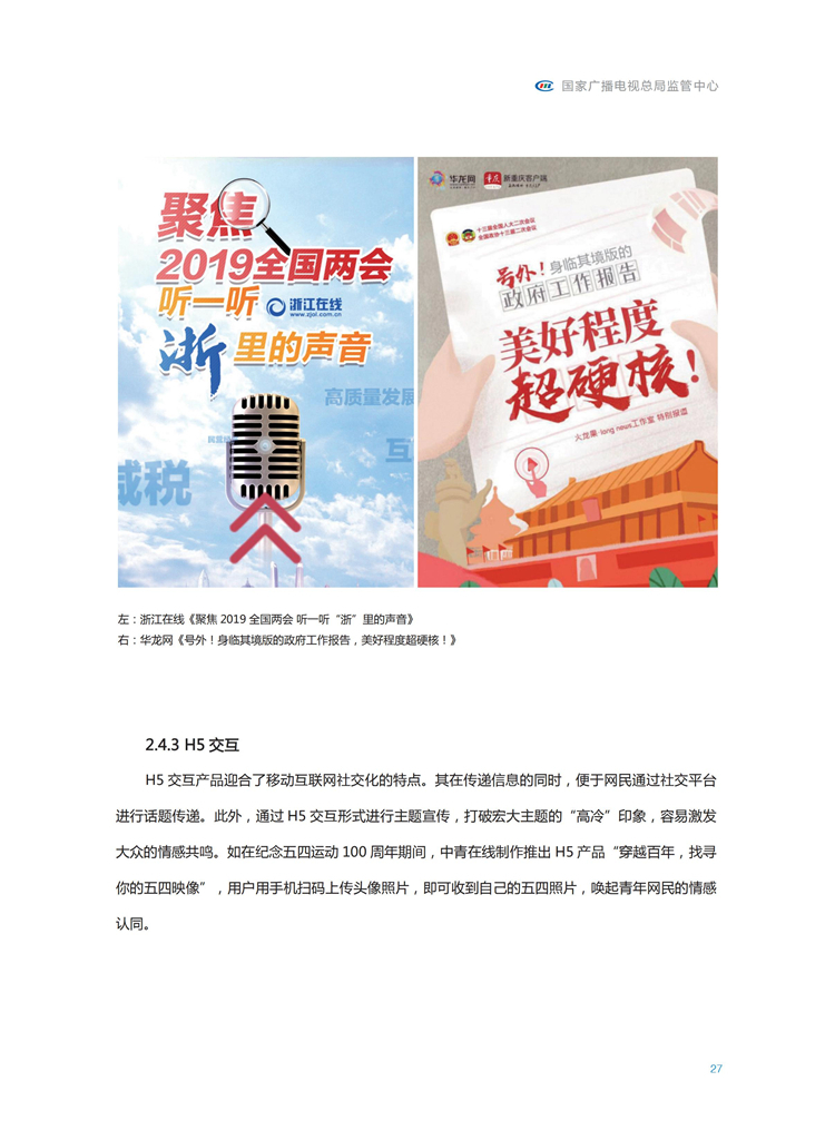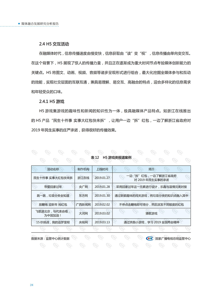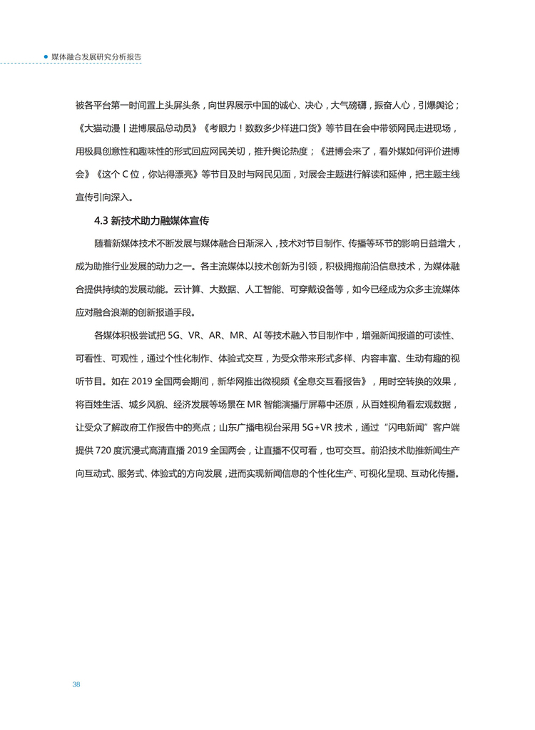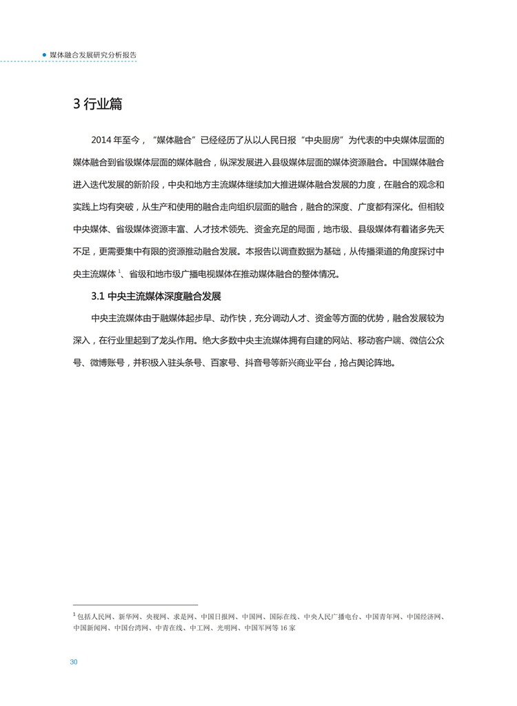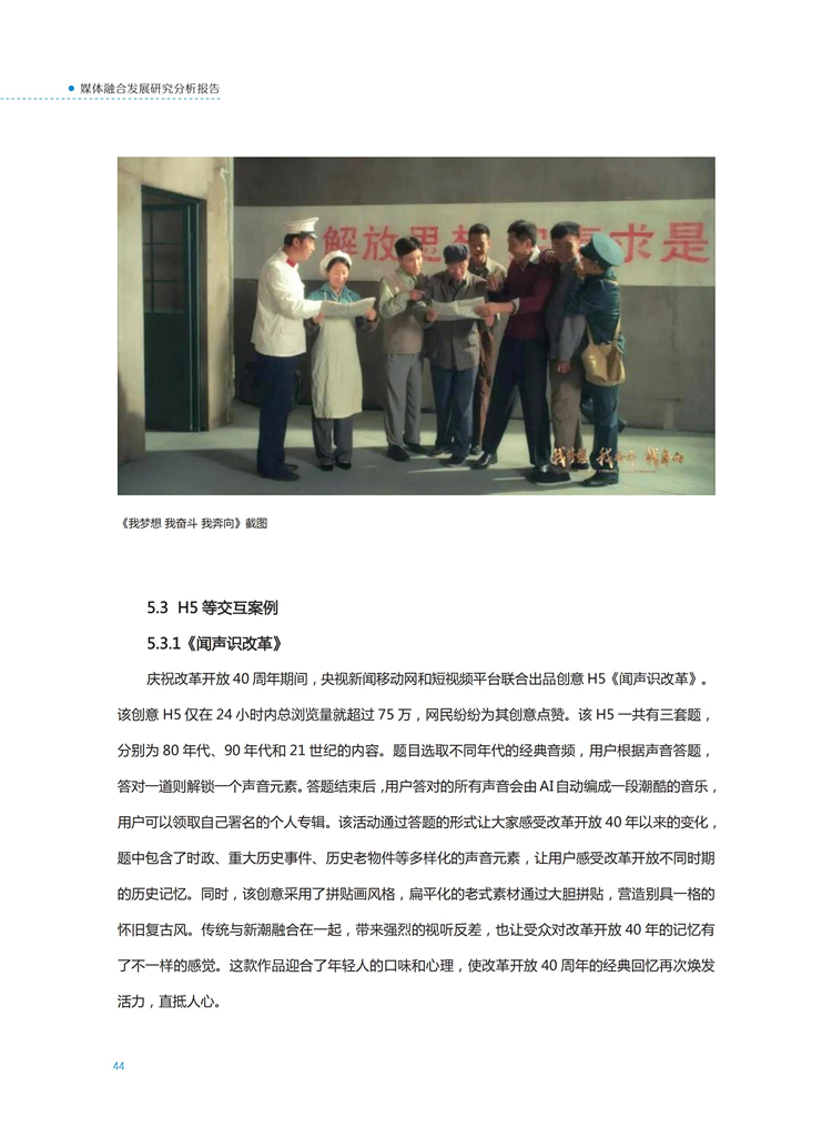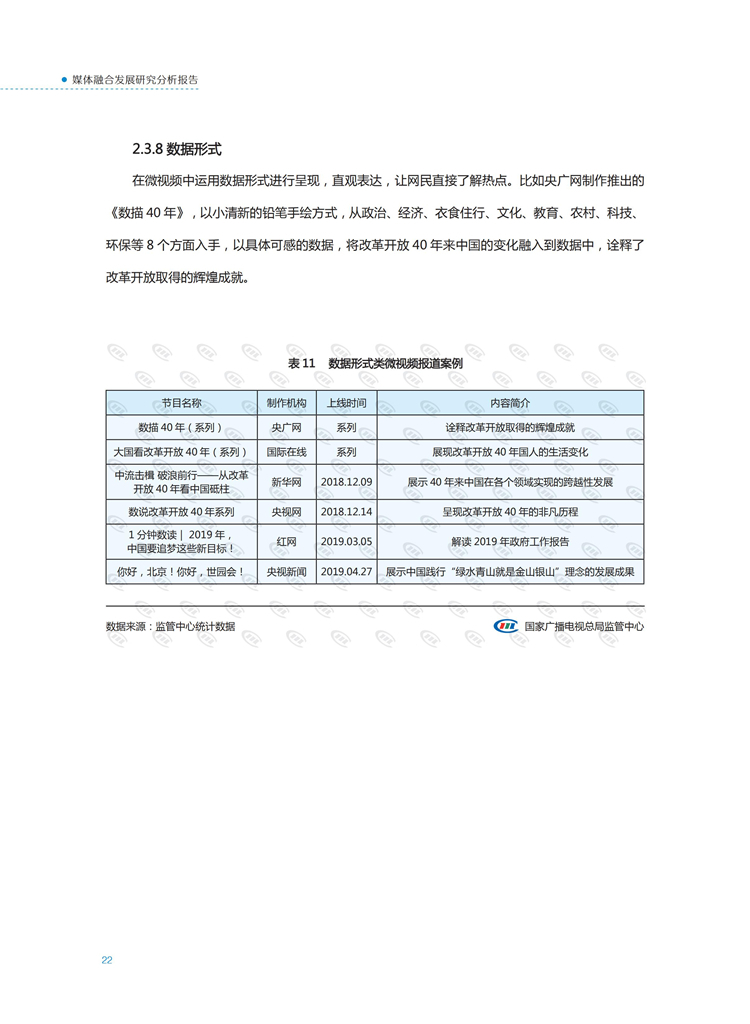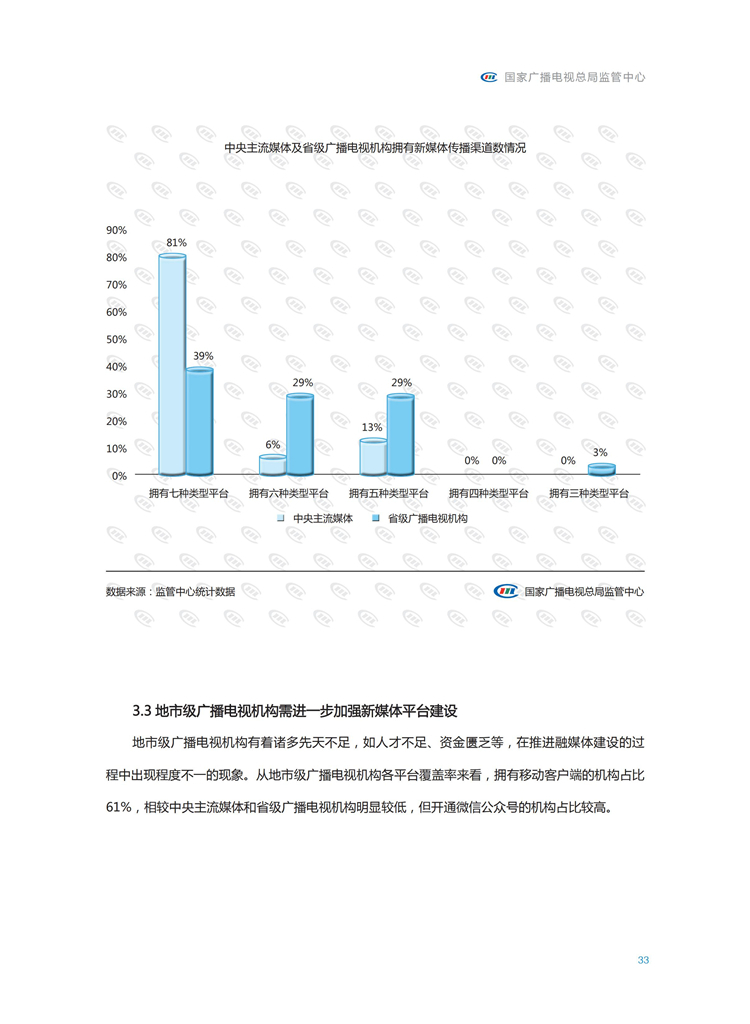 【流媒体网】摘要:国家广播电视总局监管中心紧跟媒体融合步伐,主动作为,对如火如荼进行中的媒体融合实践始终保持着密切关注和冷静观察。从政策到行业,从中央媒体到地方媒体,从产品到传播,本报告对媒体融合政策、行业发展、融合产品、传播效果等进行较为全面的梳理,展现媒体波澜壮阔的融合实践,以期为媒体融合发展服务,为行业下一步发展提供参考和借鉴。