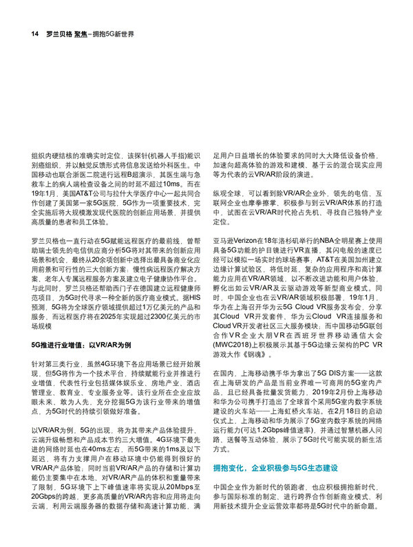 【流媒体网】摘要:本报告聚焦“5G引领行业突破”的“工业4.0”,“5G激发行业创新”的“远程医疗”及“5G推进行业增值”的“VR/AR”三大应用领域,针对5G对该行业带来的改变、该领域企业的最新进展进行剖析,同时也已经积极参与到各行各业中,帮助企业打造5G时代的业务战略,以更好地拥抱变化、为新时代到来做好充分准备。(文末附有报告全文链接,欢迎今日流媒体VIP会员下载阅读!)