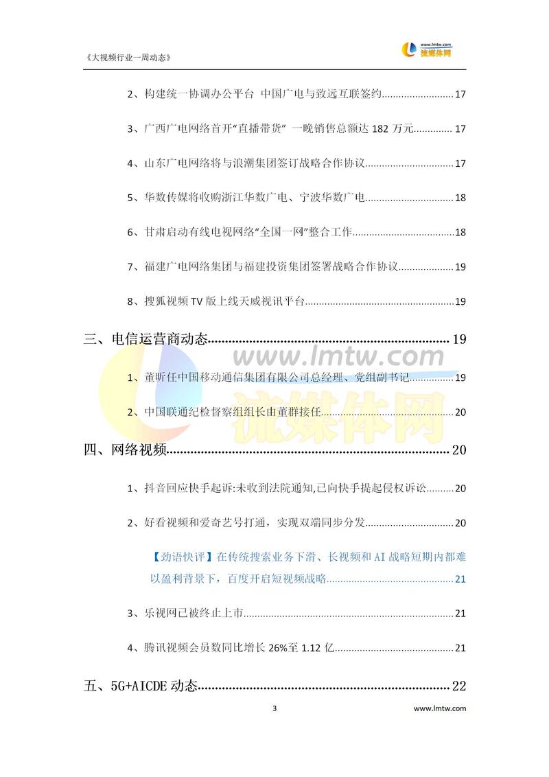 大视频行业一周市场动态报告(5.10-5.15)