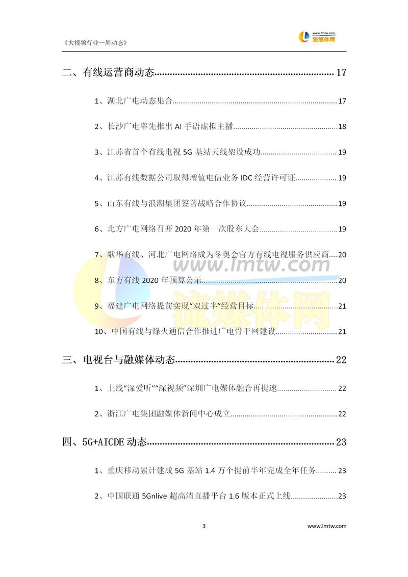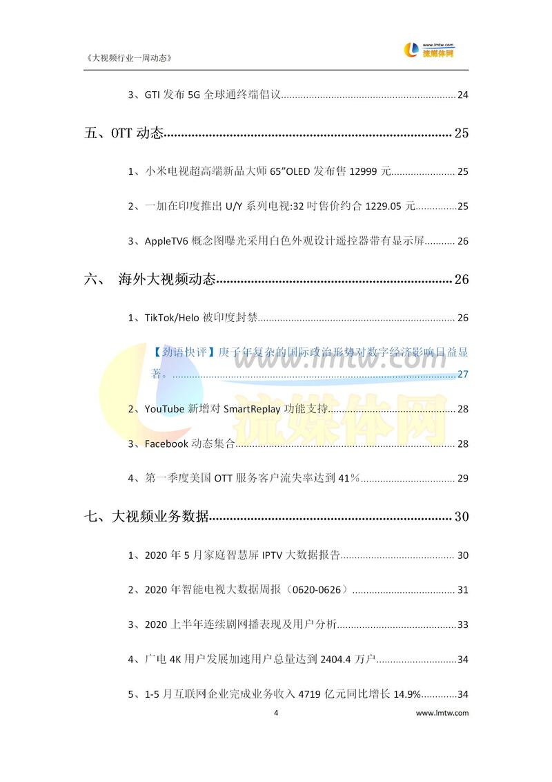 【流媒体网】消息:本报告详细汇总了2020年6月27日—7月3日国内外IPTV、OTT、互动电视、视频网站以及新兴领域动态方向,供业界参考!今日流媒体VIP会员可免费领取报告PDF版,详情请见文末。