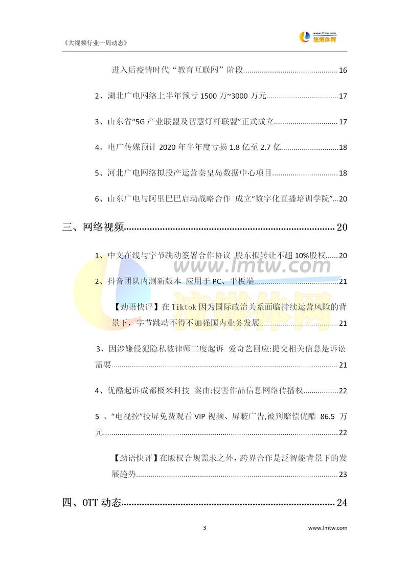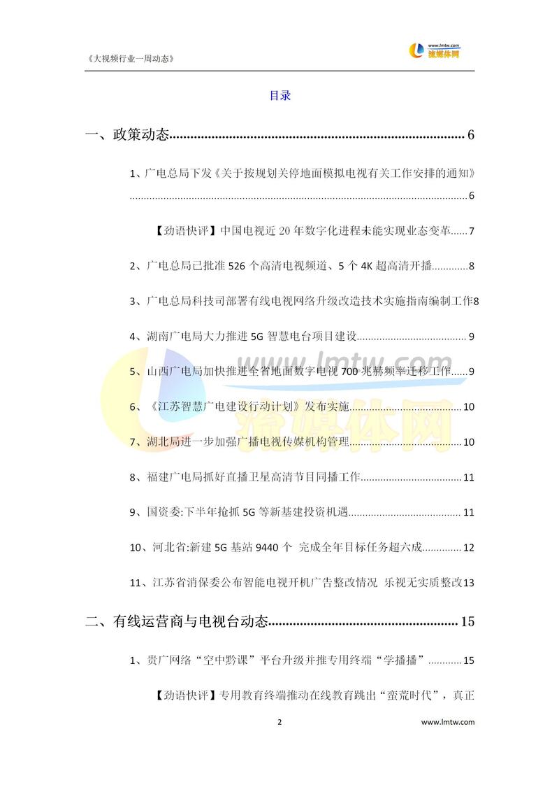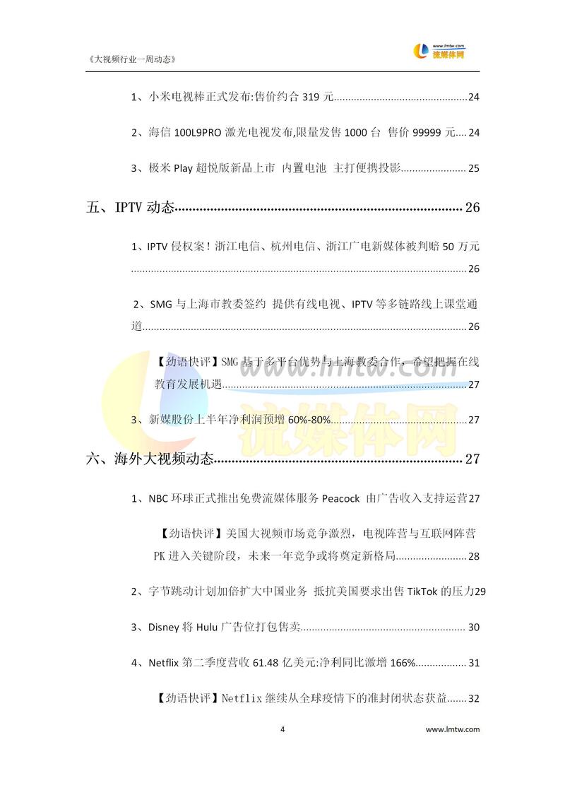 大视频行业一周市场动态报告(7.11-7.17)