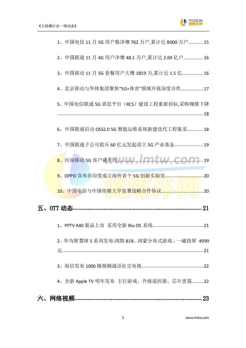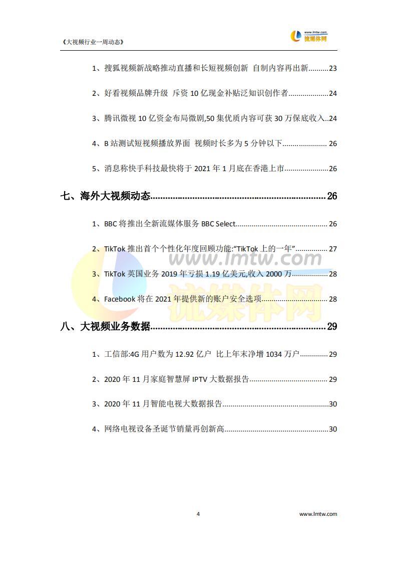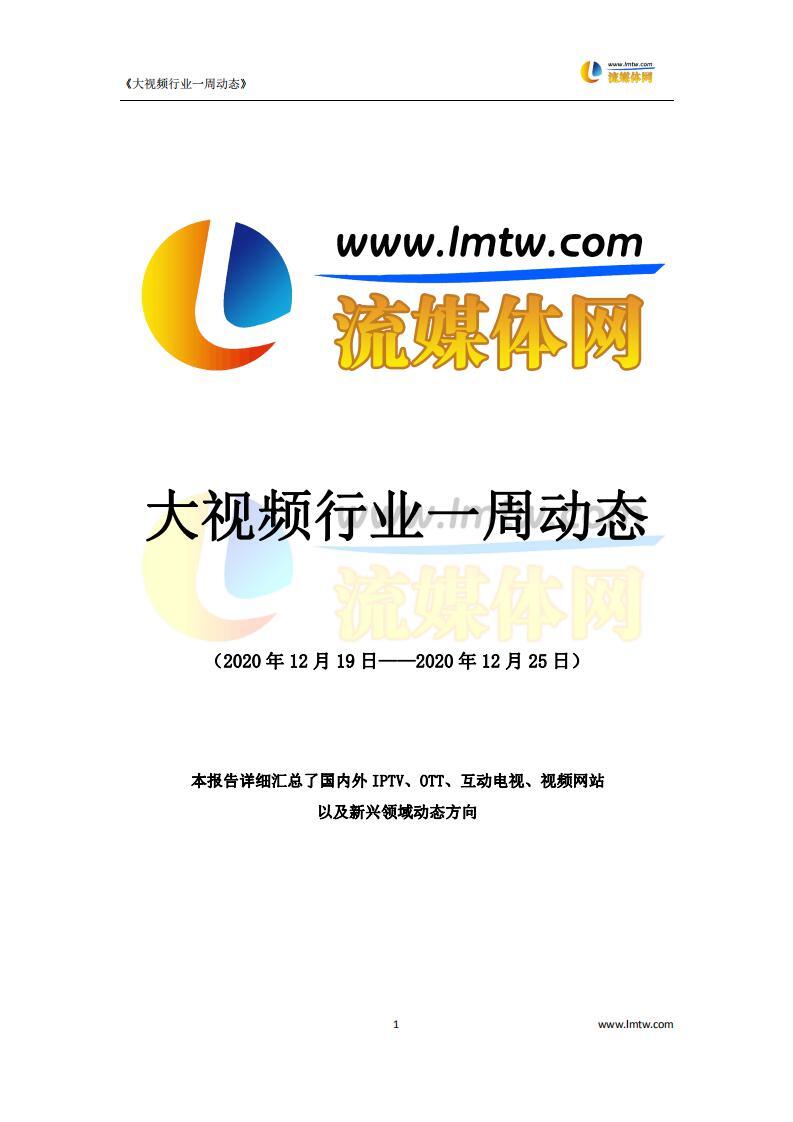【流媒体网】摘要:本报告详细汇总了2020年12月19日—12月25日国内外IPTV、OTT、互动电视、视频网站以及新兴领域动态方向,供业界参考!今日流媒体VIP会员可免费领取报告PDF版,详情请见文末。