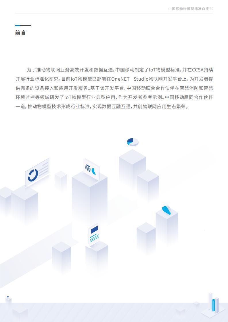 【流媒体网】摘要:为了推动物联网业务高效开发和数据互通,中国移动制定了IoT物模型标准,并在CCSA持续开展行业标准化研究。目前IoT物模型已部署在OneNET Studio物联网开发平台上,为开发者提供完备的设备接入和应用开发服务。基于该开发平台,中国移动联合合作伙伴在智慧消防和智慧环境监控等领域研发了IoT物模型行业典型应用,作为开发者参考示例。(文末附有报告全文链接,欢迎今日流媒体VIP会员下载阅读!)